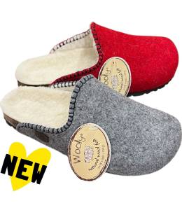Tomaia in feltro di pura lana merinos con fodera in pura lana ecologica.