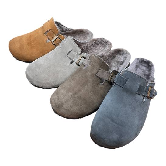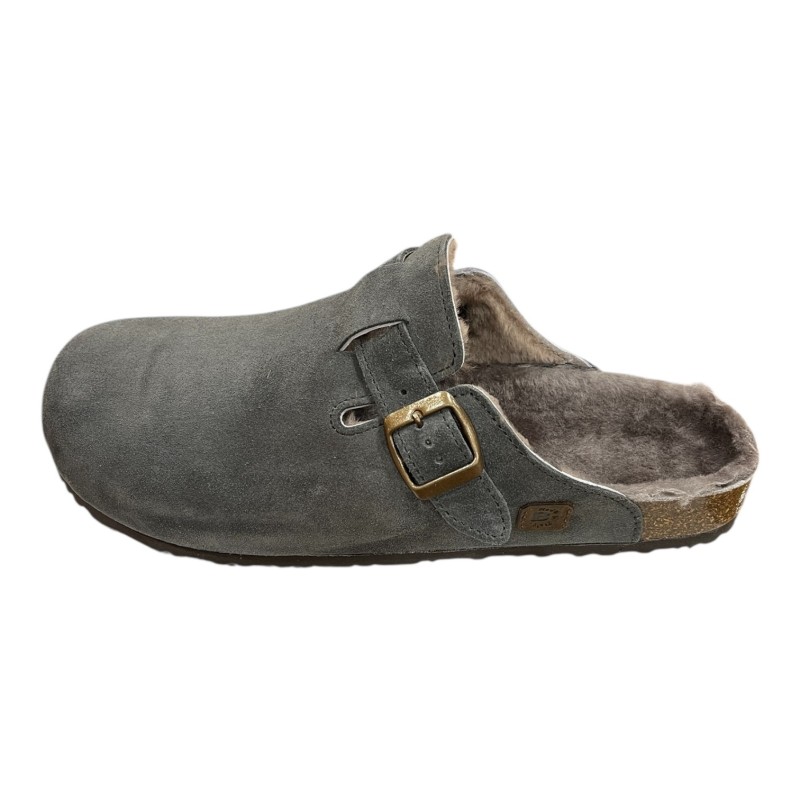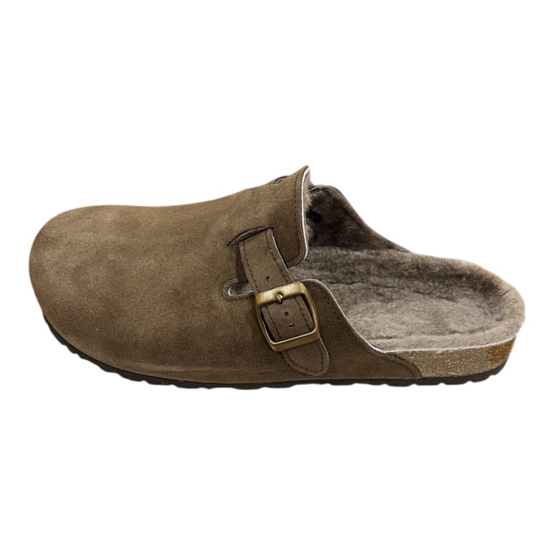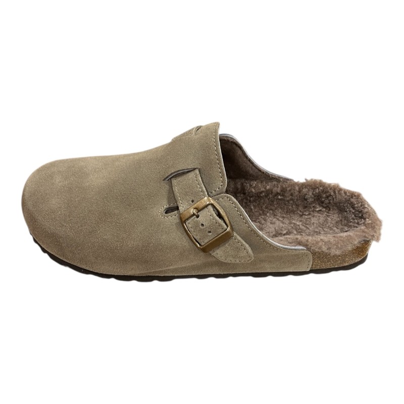 Tomaia in pelle di Crosta Bovina Scamosciata foderata Montone, regolabile con cinturino.